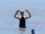 De azért közel volt hozzá, és bármennyire is irtózom a hideg víztől, inkább bevállaltam a versenymezben úszást. Egyrészt, hogy ne menjen el idő az öltözéssel, és emiatt ne centizzem ki a limitidőt. Másrészt, mert így sokkal könnyebb mellben úszni, nincs az állandó probléma a láb felemelkedésével. Elmentem még WC-re, betoltam egy High5 zselét, a zsebembe is került egy, átmentem a check-inen, és bementem a vízbe. Kurva hideg volt. Kész szerencse hogy a partnál csak épp combközépig ért, ott legalább 5 percet akklimatizálódtam, centiről centire merülve egyre lejjebb. Szerencsére a nap sütött, igazi jóféle döglesztő meleg volt kialakulóban, szóval így a vízzel is hamarabb megbékéltem. Aztán eljött a 12 óra, a szpíker felsorakoztatott minket a vízben pár méterre a parttól, és már csak a rajtjelre vártunk. Hátra álltam és a szélére: nem akartam sem azt hogy átússzanak rajtam, sem azt, hogy én rúgjak fejbe valakit a mell-lábbal.
