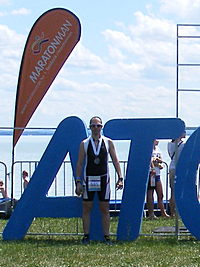 A hurok legtávolabbi végén frissítő, és innen már csak másfél kiló a cél. Ez is hamar eltelt, így nemsokára feltűnt a célkapu. A futás vége 43:56 lett, tehát meglett a 6:30 belüli tempó. Az átlagpulzus 165, pontosan a terv szerint. A célidő végül 2:27:03 lett. Ez a versenytáv nem “szabványos”, így későbbi versenyekkel nem nagyon tudom majd összehasonlítani, de végre elmondhattam hogy triatlonos vagyok.