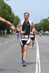 A futást is próbáltam lazán kezdeni. A melegre és az árnyékmentes pályára való tekintettel itt is 160-at lőttem be célnak. Ez tarthatónak is tűnt, bár a tempóval nem voltam elégedett, Keneséhez képest itt fájdalmasabb kilók sikerültek csak. A kétkörös futás első körének vége felé jött a holtpont, és tartott egy jó darabig. Akkor azért fájt az élet. A második kör második felében már a cél közelsége tartotta bennem a lelket, meg az, hogy azért elég sokan voltak még mögöttem, és nekik is fájt. Még utoljára át kellett futni az aluljárón, fel a rámpán, és most már a célkapu előtt nem kellett visszafordulni, hanem csak egyenesen a kapu felé. És végre jött előbb a vörös, majd a chip szőnyeg, és vége volt. Remegő lábbal ültem le egy domboldalra, ebben nem sok maradt. A futás 1:07:04 lett, de a két kör közt komoly eltérés volt: 30:26 és 36:38. Átlagtempó 6:43, de a két köré külön 6:09 és 7:15. Az átlagpulzust a végén már elengedtem, talán az első körben volt csak 160, utána végig felette, 168 lett a végére. Szóval ebben tényleg nem sok maradt.