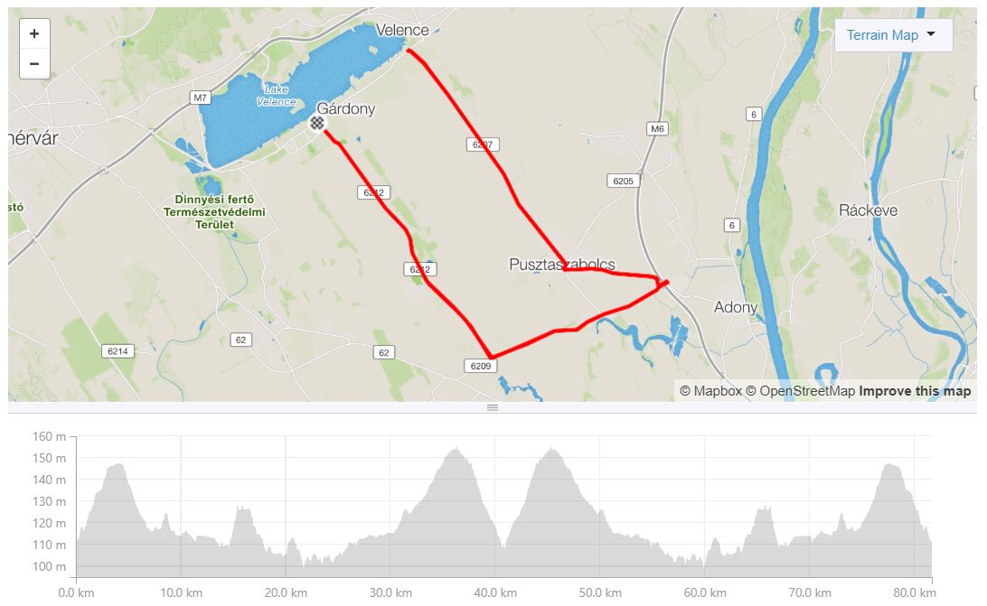 Sokan vagyunk még a pályán, de az élboly már az utolsó kis körben jár. Lassan nekem is véget ér a kör, már hallatszik a versenyközpont. Elérem a chipszőnyeget: a kör 35km, az idő 1:21 és 25.6-os az átlag. Ez továbbra is jó, a két tizedes csökkenést számítási hibának tudom be, nem probléma. Gabiék várnak a frissítővel, szokás szerint a szervezőktől veszek fel vizet, a segítőimtől most csak kólát, a zselés kulacs még félig van. Megvan az elkerülő, és már újra Ötvöskónyi felé haladunk, megelőz egy váltós ember, a szélárnyékában valaki, aki másnap dobogóra állt és pénzdíjat kapott. Természetesen nincs a közelben versenybíró. Tudja valaki, egyáltalán volt penalty box? Vagy az eleve nem is volt felállítva, gondolván úgysem küldenek oda senkit?