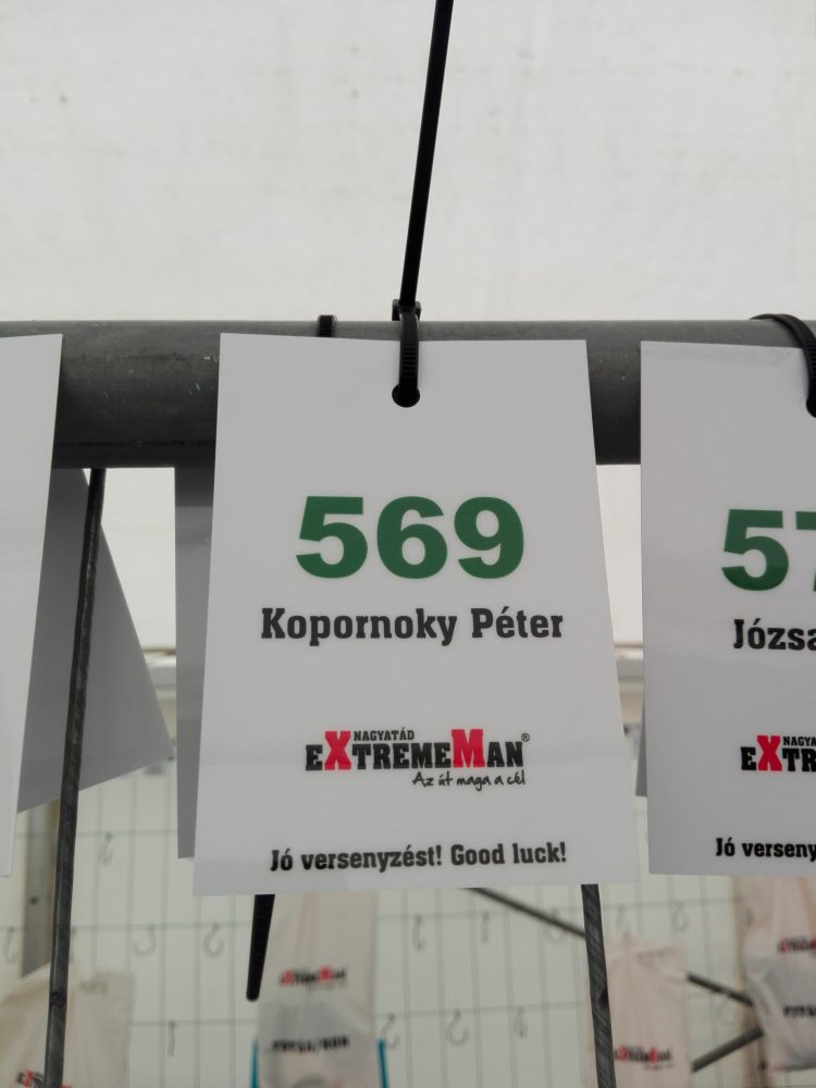 Óra fel, chip fel. Sapka, szemüveg. A szemüveget még otthon páramentesítettem, nekem a mosogatószeres megoldás vált be, de volt tartalék szemüveg is Gabiéknál. Ha egy morcosabb keszeg utolérne és lerágná rólam az első körben, akkor a második körre még legyen egy tartalék. Próbáltam volna még húzni az időt, de nem lehetett, vinni kellett a bringát a depóba. Ami szokatlan volt, hogy a bejáratnál nem nézték sem a fejvédőt, sem a fékeket, simán be lehetett sétálni. Ez fura volt. Hamar megtaláltam a helyemet, el is foglaltam. Először azt hittem ide kell tenni a bringás zsákot is.