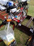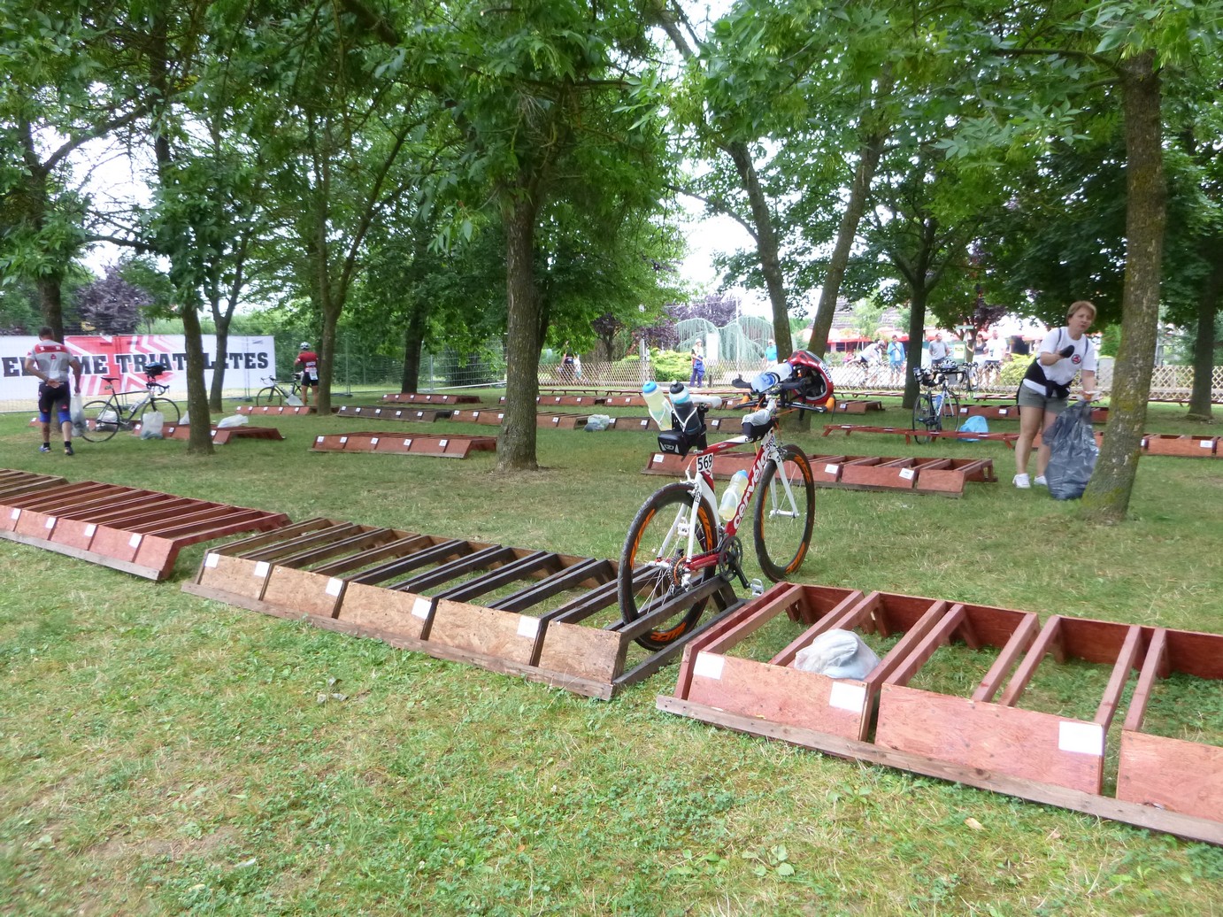 Amikor legutóbb itt jártam, akkor még a tótól felvezető út mentén voltak lerakva a zsákok a földre. Azóta sok idő telt el, gondoltam már a bringa alá depózunk. Aztán amikor már elhagytam a depót, akkor tudtam meg Gabitól, hogy a sátor mögött vannak a fogasok, oda kéne akasztani. Simán visszaengedtek, (rajtszám sem volt ugye rajtam, a karunkra sem írták fel) átraktam a zsákot, így már a helyén volt minden. De hogy a depózás ennyire laza legyen, hát ez szokatlan volt, főleg egy OB-n.
