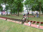 5-ös indulást terveztünk, az eső meg még esett, úgyhogy kellemes kis feladat volt lehurcolni a kocsiig a mérhetetlen mennyiségű cuccunkat. De csak sikerült, és hamarosan el is indultuk. Tamás vezetett, nekem most nem volt kedvem hozzá. Van valami fenséges a látványban, amikor a hajnali épphogy szürkületben kígyózik a kocsisor a földek között. Senki nem jön szembe, nem töri meg fényszóró fénye az egybefüggő piros vonalat. Szép, na. De mint minden szépségnek, ennek is vége lett egyszer, és már fordultunk is be a nagy parkolóba Gyékényesen. Nem jöttünk későn, szerintem a mezőny első felében voltunk, így nem kellett kapkodni a készülődéssel. Valahol itt jött el a pont, hogy már idegeskedni sem tudtam. Csendes beletörődéssel néztem a tavat, az eget, a bringát. Itt vagyunk, csinálni kell. Most már nem kell aggódni hogy mi lesz, mert a dolog már most történik. Ebből kell kihozni a legtöbbet. Itt volt előttünk a persely, kezünkben a kalapács, fél óra múlva feltörjük, és kiderül mit tartalmaz. Most már nem kéne elrontani semmit. Muszáj volt még enni valamit, lement egy kis piskóta, ez legalább CH. Összeraktam a bringát, rá a kulacsokat, ez már menetkész. Én még nem, de hamarosan.