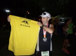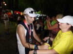 Magamra terítem az új törcsit, kifejezetten jól esik, mert most már azért ráz a hideg. Átveszem a Finisher pólót, és leülünk az asztalokhoz. Segítőim legalább olyan fáradtak mint én. Időztünk még ott egy kicsit, de későn kapcsoltam, és rettentően elmerevedtek a lábaim, fájdalmas a felkelés. De muszáj volt felkelni, mert ki akartam depózni mielőbb. Itt láttam Cillát befutni a hetedik körről, tudtam hogy meglesz neki az utolsó is. Gratula, nagy voltál! A kidepózás gyorsan meg is volt, és míg Gabiék elmentek az autóért, addig én óvatosan visszatekertem a hotelba. Az első pár tekerés fájt, de utána már egész jó volt a combom. Ez nap többet nem tartogatott, hamarosan mindannyian az ágyba ájultunk a tűzijáték után. Úgy sejtettem, hogy kínkeserves lesz az ébredés, és legszívesebben délig aludnék majd.