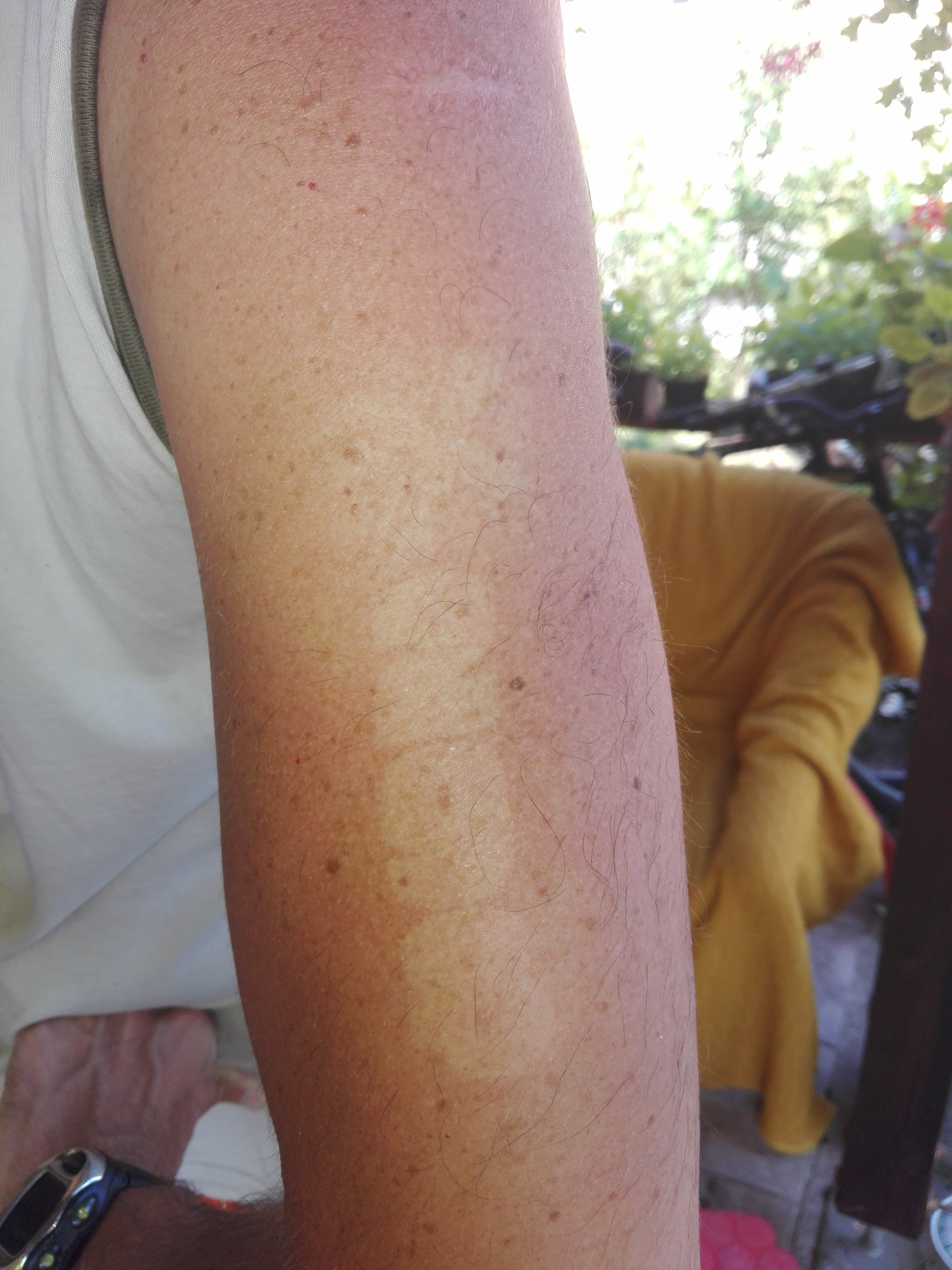 A hétvégi bringák többnyire a már bejáratott Agárd-M6-Agárd TT pályán, vagy az Agárd-Pusztaszabolcs-Velence-Pusztaszabolcs-Agárd útvonalon zajlottak. Ideális edzőterep, mert az út jó, a forgalom kicsi, és mivel már sokszor mentem arra, van összehasonlítási alap a különböző tekerésekkel. Júliusban társaságra is szert tettem pár edzés erejéig: csatlakozott hozzám két kis teknőctársam, Dorka és Cilla, akikkel (bár más-más tempóban) de mégis egyszerre gyűrtük a kilométereket. Az edzések megfelelő periodizációval voltak felépítve, ebben sokat segített a Training Peaks, és a számok egyre jobbak lettek, szóval úgy tűnt hogy készen állok Nagyatádra. Persze ahogy tavaly a szögbe lépés, úgy idén is volt olyan esemény, ami nem hiányzott. Pont két héttel a verseny előtt egy teljesen ártalmatlan helyzetben sikerült elesni, vagyis inkább eldőlni a bringával. Csúnyán levertem a térdemet, de nem is ez volt a fő gond, hanem hogy irgalmatlanul odaütöttem a jobb oldali IT szalagomat, amivel sok-sok éve már volt probléma. Az elmúlt, de tudtam hogy ha ismét megsérül, akkor az nagyon lassan gyógyul. Jegeltem, krémeztem, gyógyszer vettem be rá, és főleg pihentettem. Az utolsó két hétben így sem futás, sem úszás nem volt, csak pár laza görgőzés, és egy kinti tekerés.